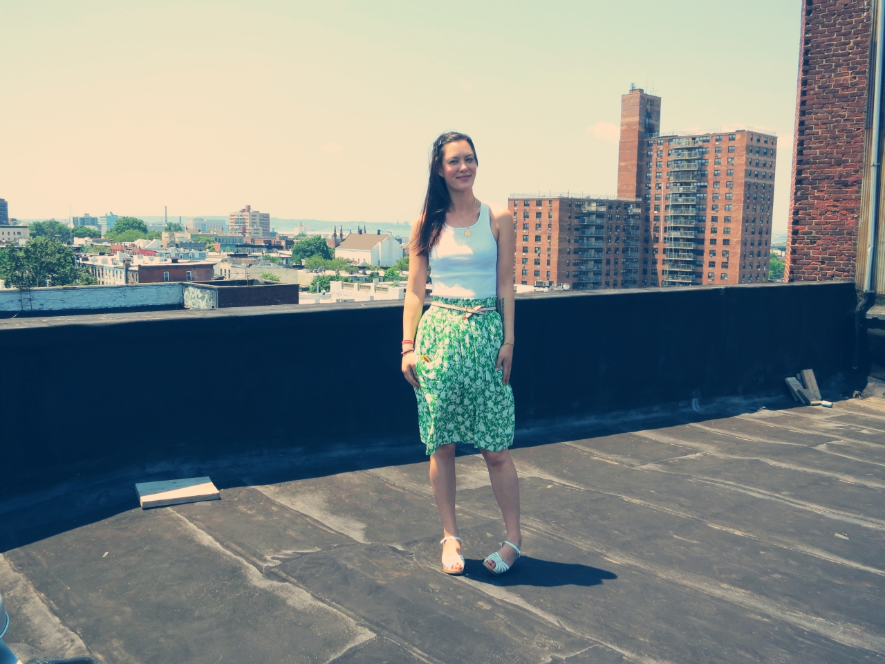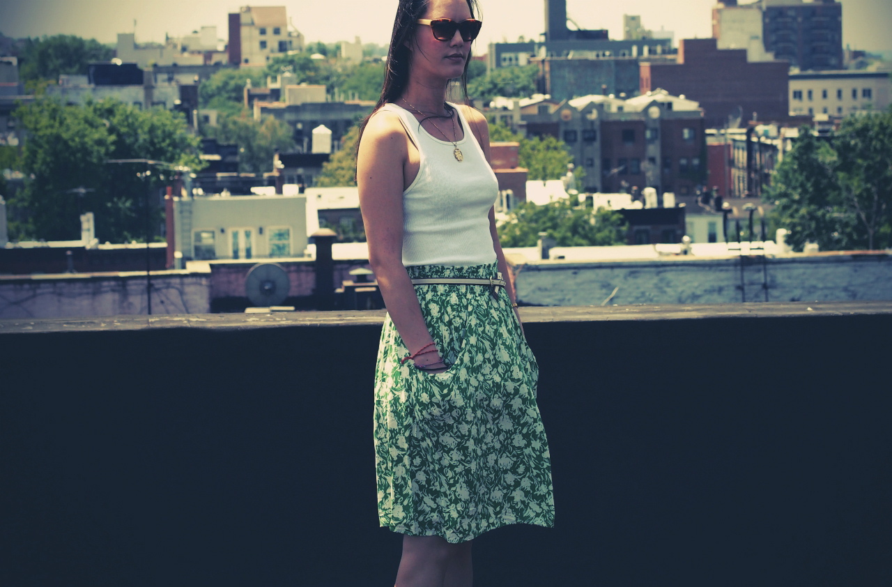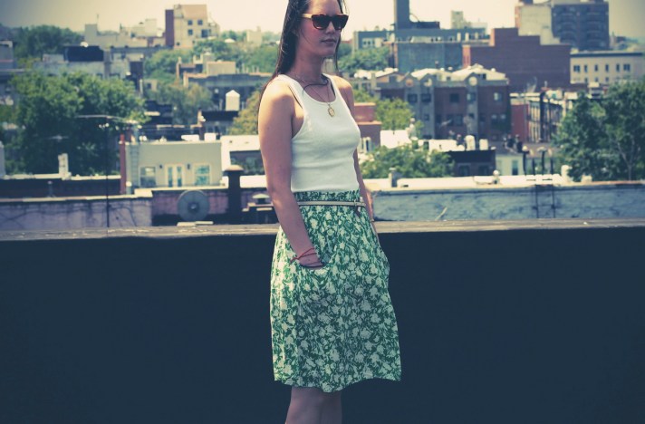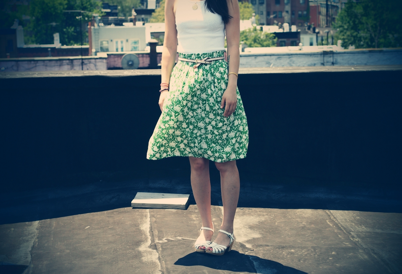tank: hanes – skirt and sunnies: anthropologie (old) – belt: h&m – sandals: swedish hasbeens for h&m