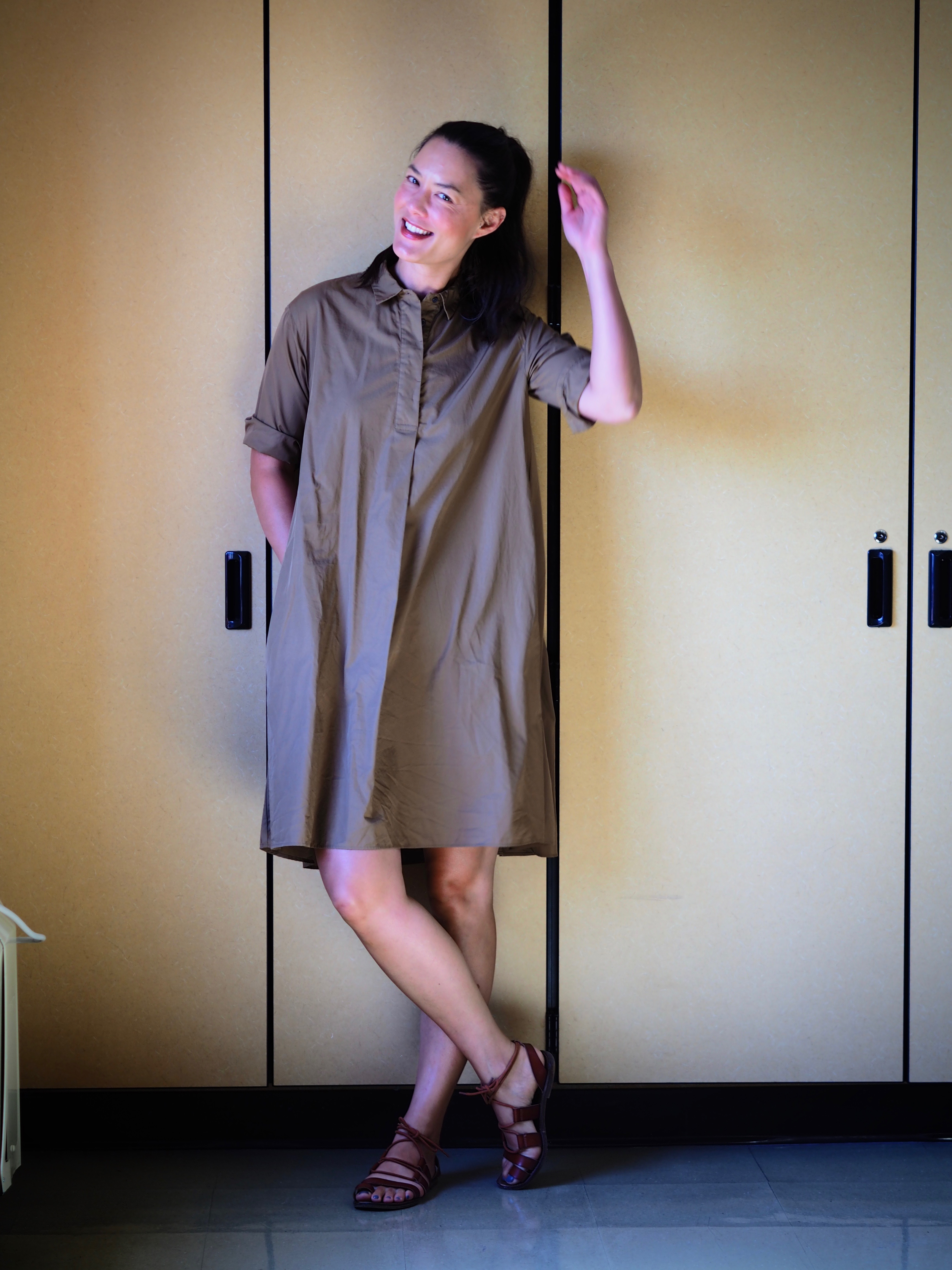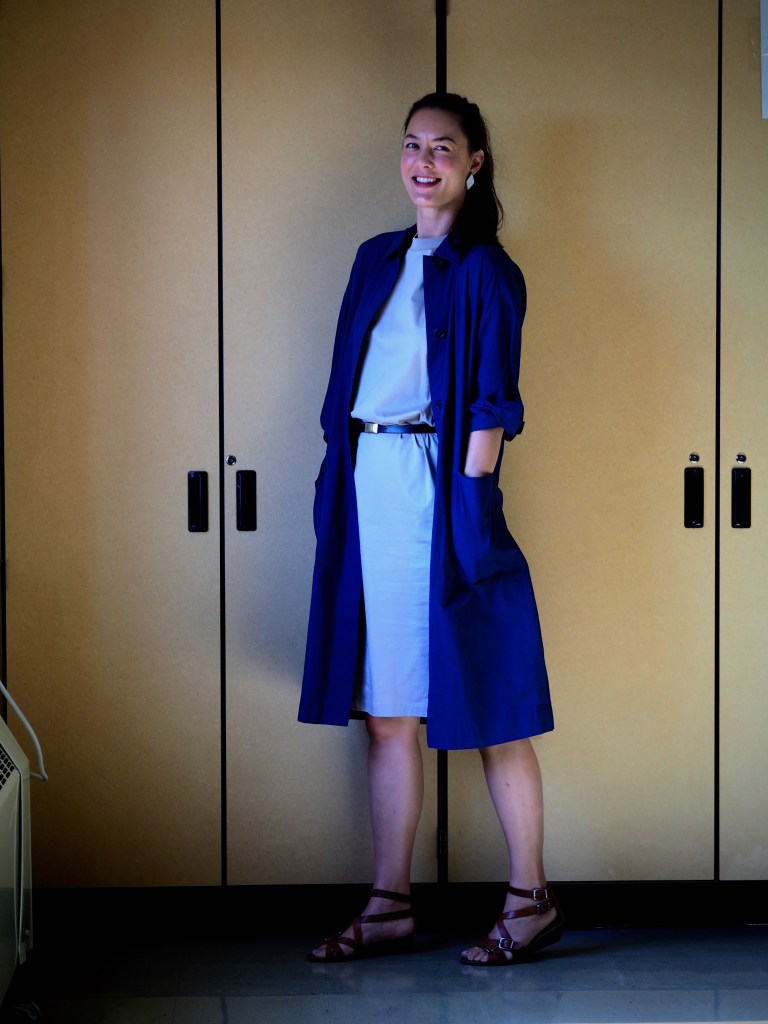 coat: cos – dress: uniqlo – belt: jcrew – sandals: madewell – earrings: sara boeck – watch: fitbit
