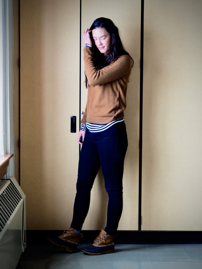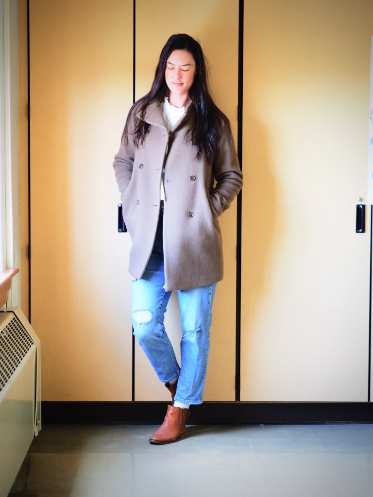 jacket and sweater: uniqlo – shirt: cos – jeans: bgd – boots: ll bean
