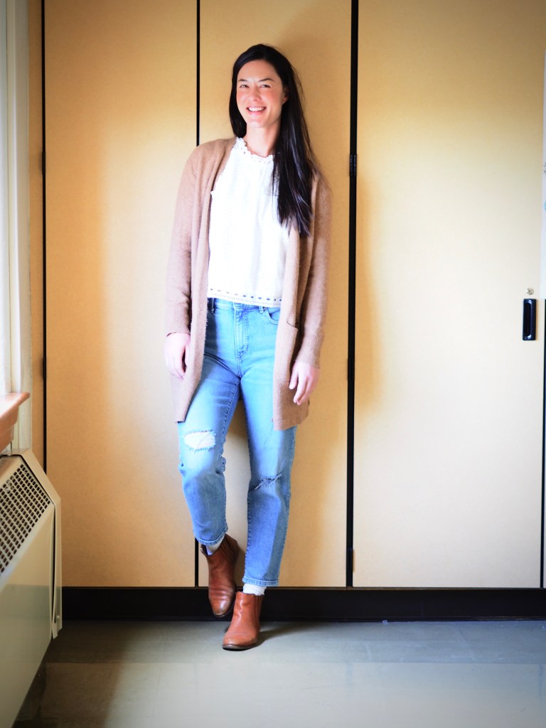 This was what I wore yesterday to school for parent teacher conferences (on a Friday). I planned to wear a blazer and smarten up my look for parent meetings, but I decided that “warm and casual” would endear my RBF to the parents more. I know, big eye-roll from me too. But after my last Back to school night experience with parents that are hard to please, I wanted to try and avoid the whole “she’s so serious and unfriendly” shtick.