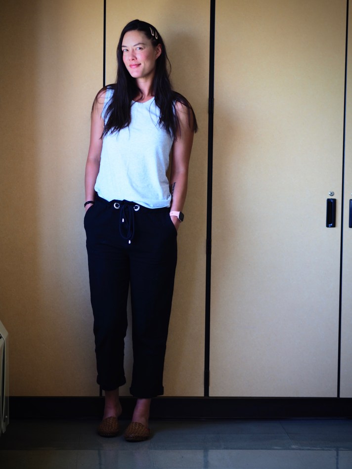 coat: cos – dress: uniqlo – belt: jcrew – sandals: madewell – earrings: sara boeck – watch: fitbit