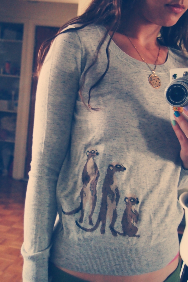 5. & 6. new pullover.  OMG so adrobs, right?  Who doesn’t like meerkats?  Yes, I know it was expensive ($80!! don’t tell my mom!), but I couldn’t resist.  So. damn. cute.  Sold out online, hop over to a Madewell store if you agree this cuteness is worth $80.