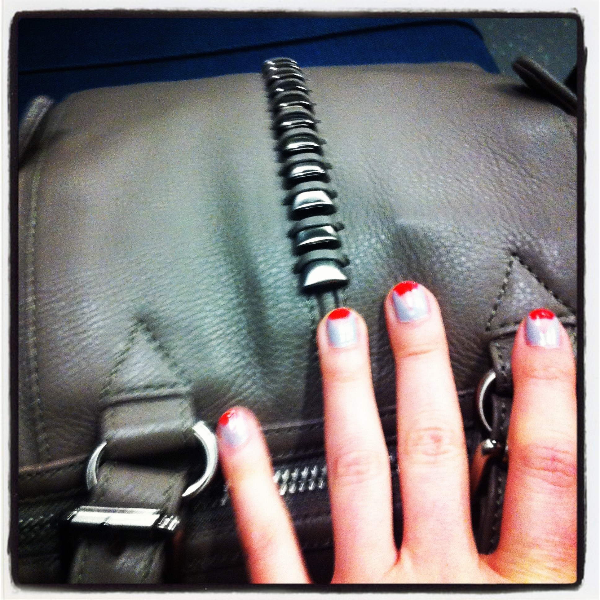 This design took a while but was pretty simple in the end. Full grey nails, covered half way with red. Then add a white dot and outline with black sharpie marker (or sally hansen nail polish pens). By the way, this photo was taken on Australia Day where B (the aussie) and I celebrated with Coopers Pale Ale and special edition sheepskin stubbie holders by Aussie Bentley.