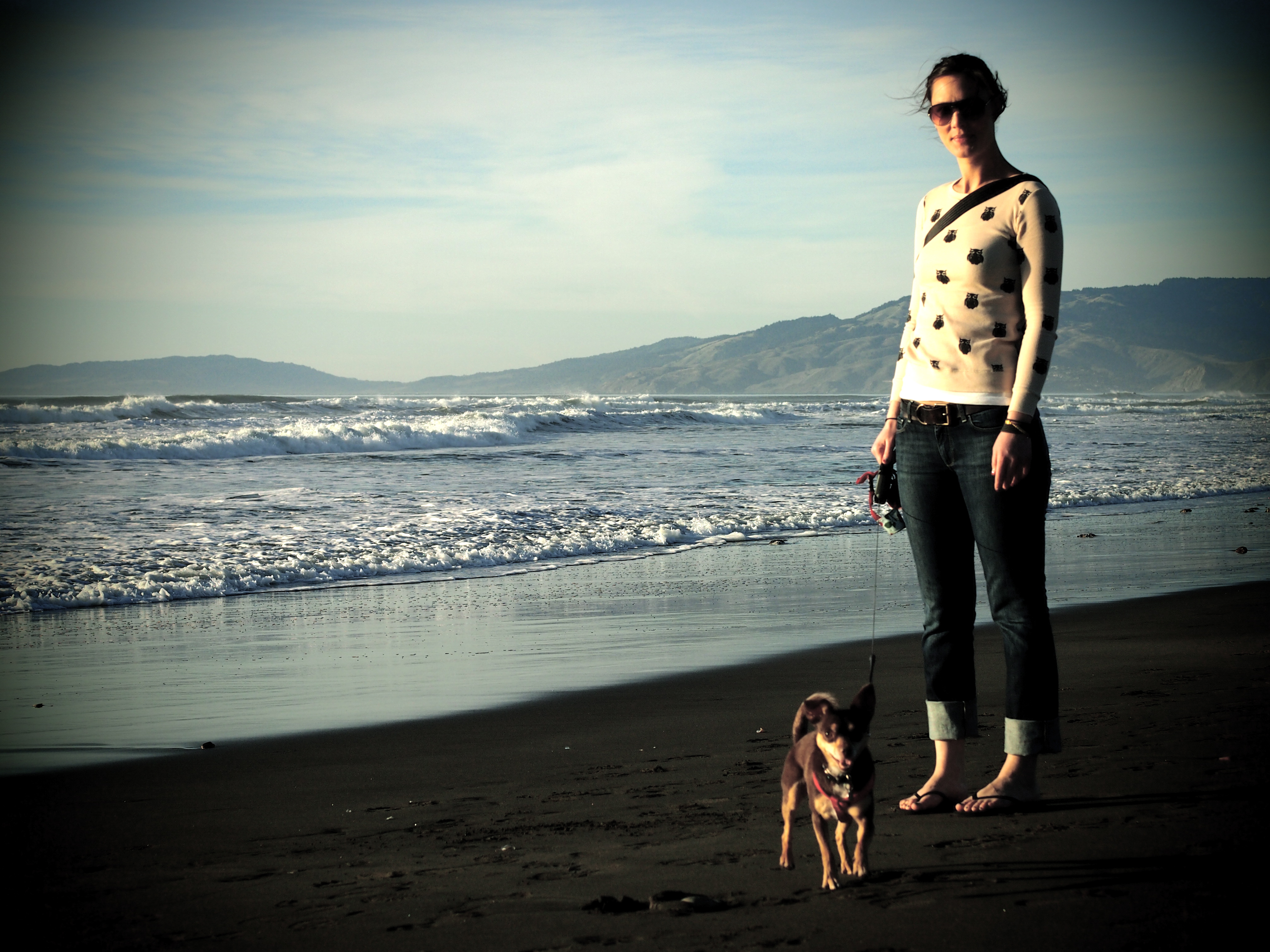 B, Bambi and I decided to take advantage of the unseasonable weather last weekend by taking Bambs to her favorite place in the city: Ocean beach. She luuuuves the beach. Ocean Beach is Bambi’s favorite by far because 1) there aren’t as many dogs there compared to fort funston (she’s anti-social to an extreme degree) and 2) there aren’t many hills to climb. So she got to prance, run and sniff (on leash of course) to her satisfaction at the beach.