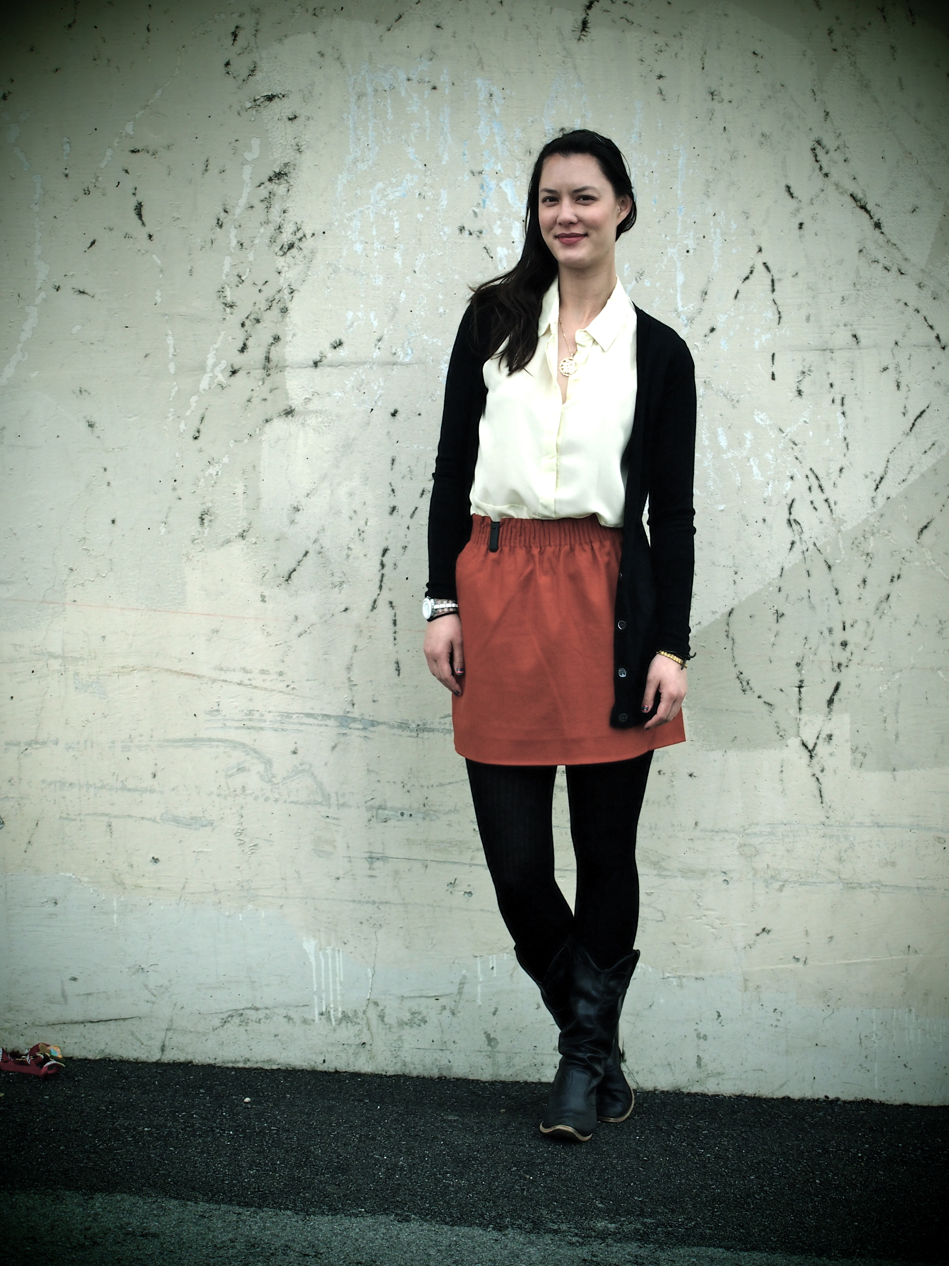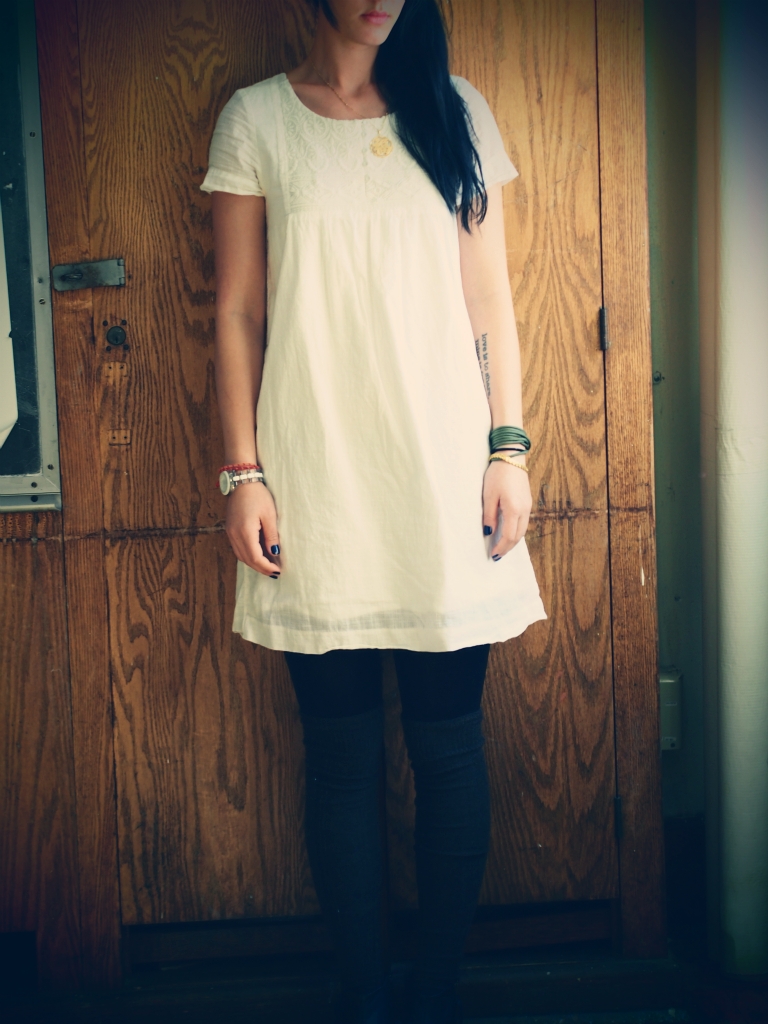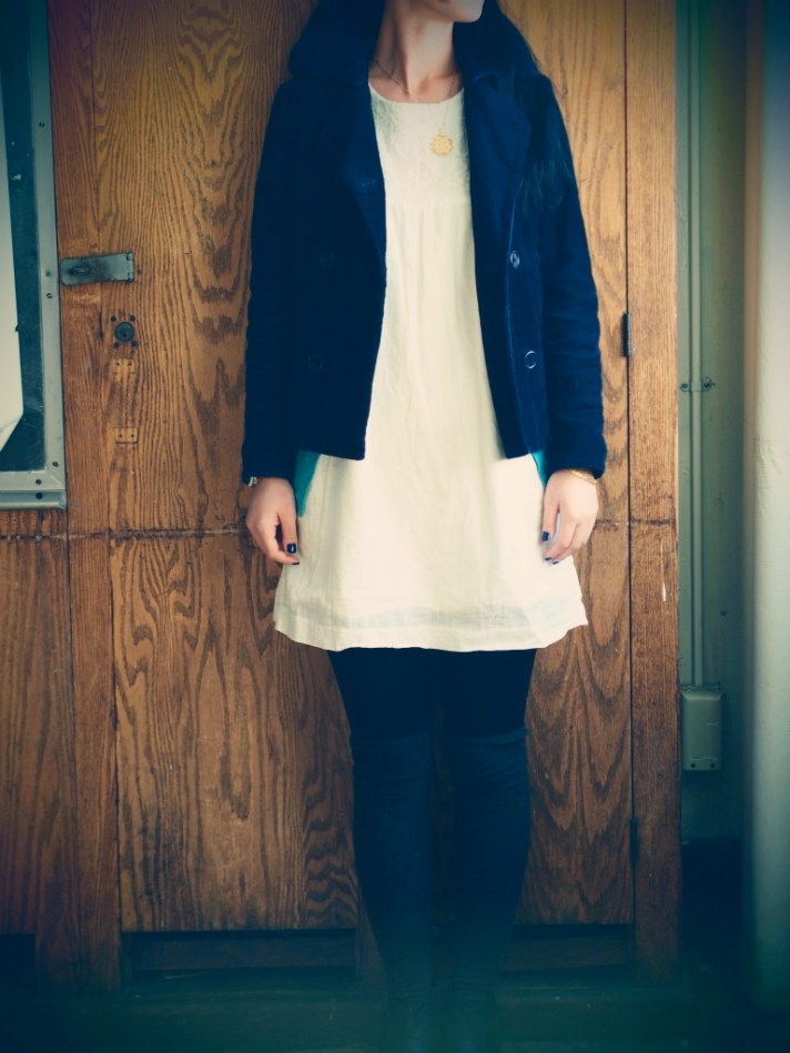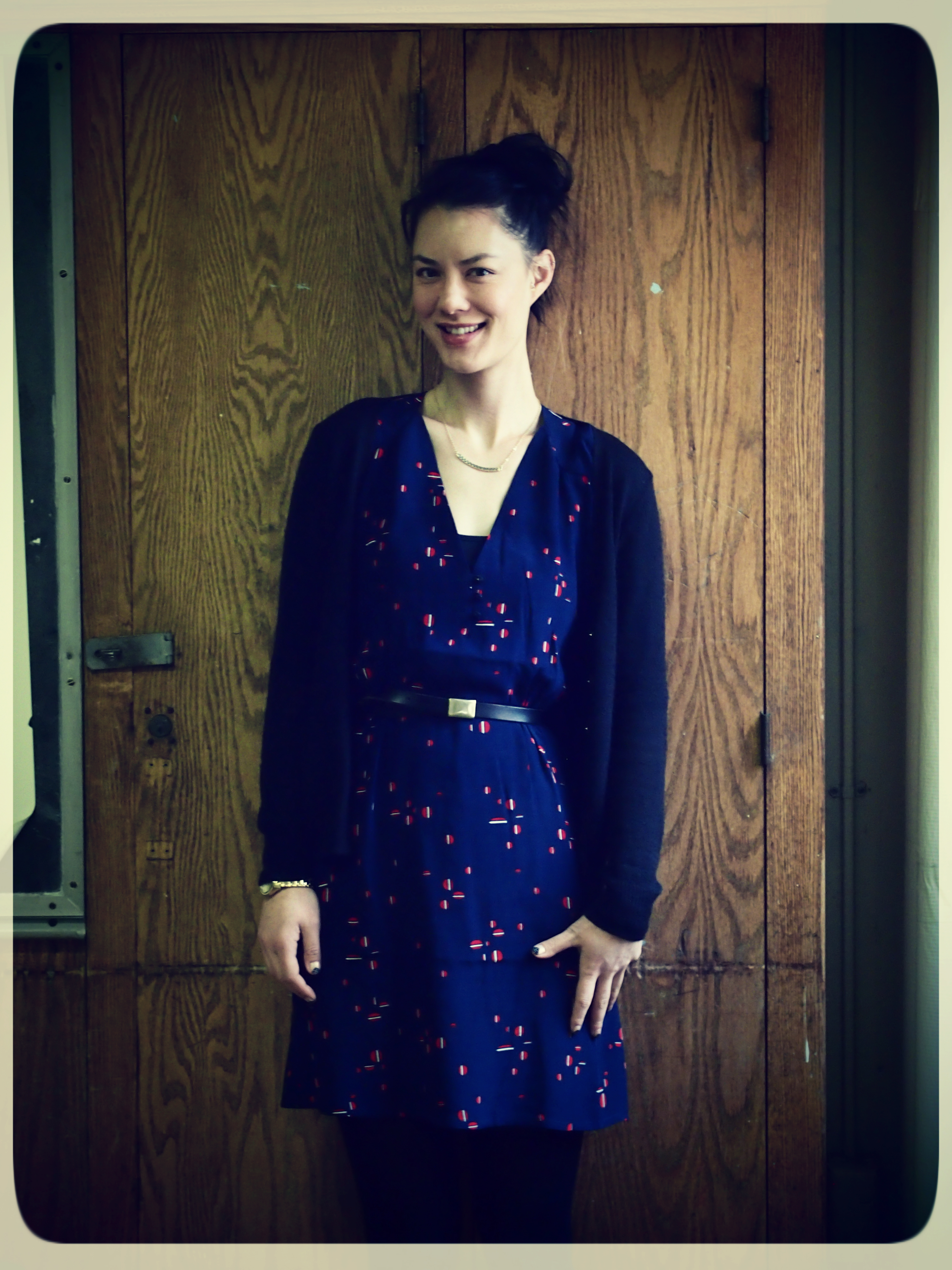 Brooklyn is having a warm couple of days – it’s practically a winter heat wave at 55˚F! This ‘warm’ weather comes right on the heels of about an inch of snow just 2 days ago. I’m just happy to have a break from my snow/rain boots. I just bought this dress online from Urban Outfitters. It came out a really long time ago (a year maybe?) and I loved it right away when I saw it. I did not love the price tag on the other hand, so I waited. And waited. And waited. Just about everything goes on sale eventually at UO, especially if it’s an ‘online only’ item like this dress was. When the price finally dropped down to one I was willing to pay ($50) I ordered it right away. I’m glad I did too! The dress is made by Sessun a french line carried by UO stateside, but also available through ASOS. I love this brand – so frenchie chic. This dress garnered many compliments, including “Your dress looks like it’s slinging Pepsi!”.