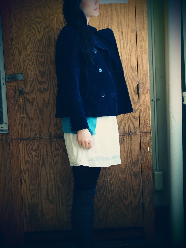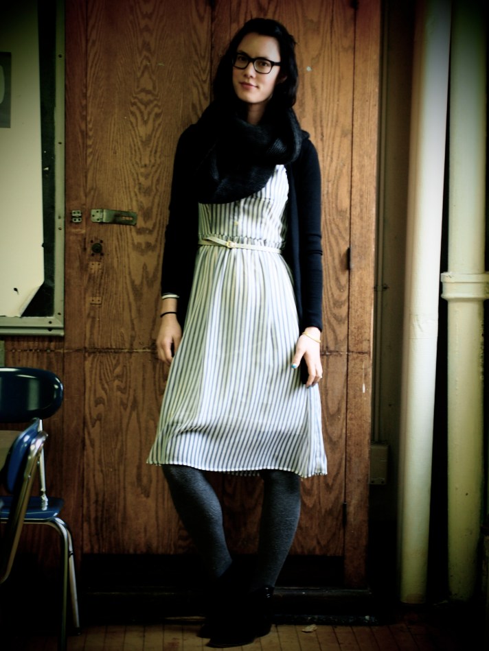dress: sessun via uo – cardigan & belt – j.crew – necklace: f21 – tights: uniqlo – boots: steve madden