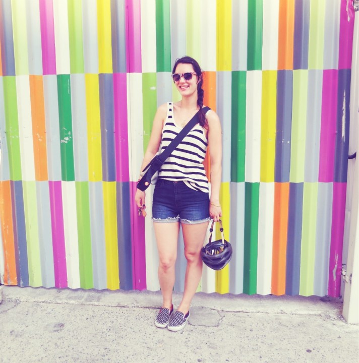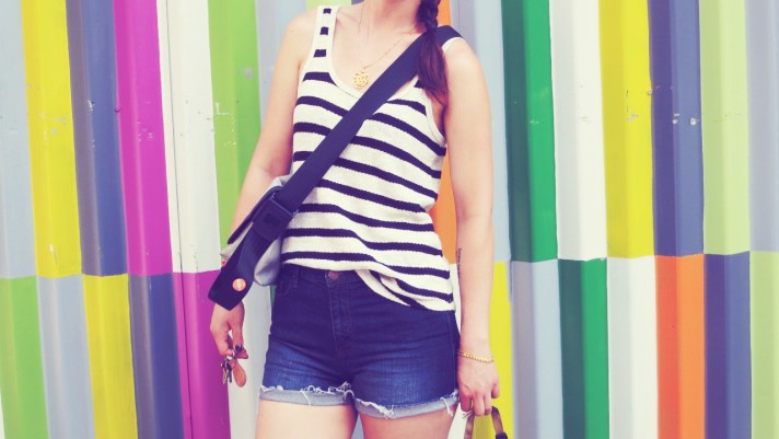 sunnies: f21 – tank: madewell (on super sale last weekend, similar here) – shorts: BDG from UO – shoes: vans – bag: freitag – nails: revlon scandalous