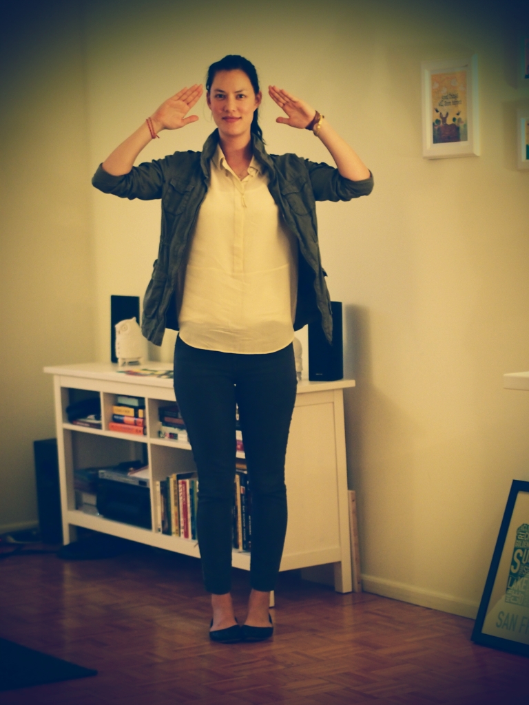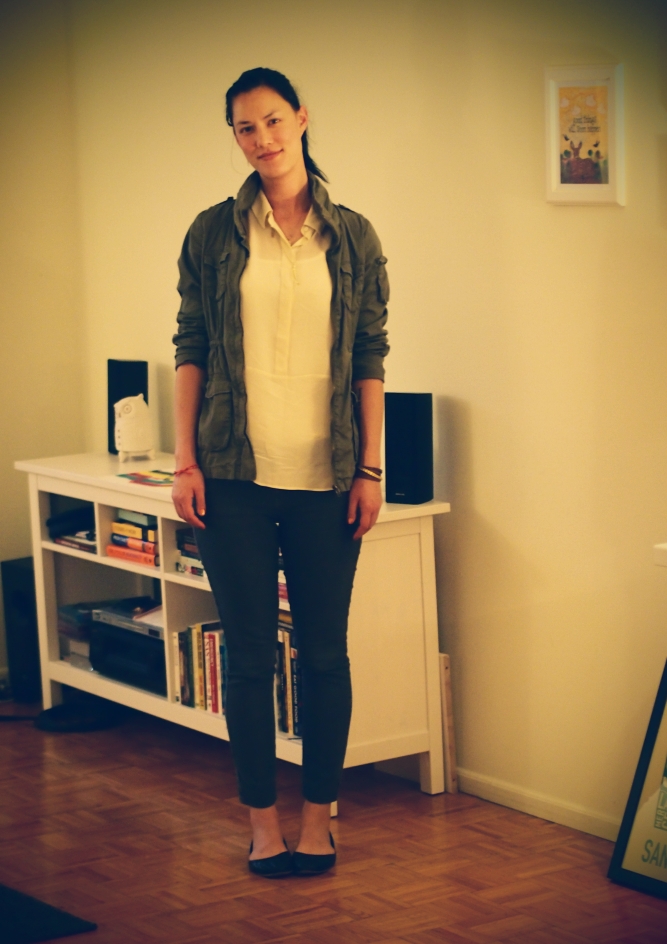 In the meantime, here’s what I wore today, pencil in hair, sinister smile and all.